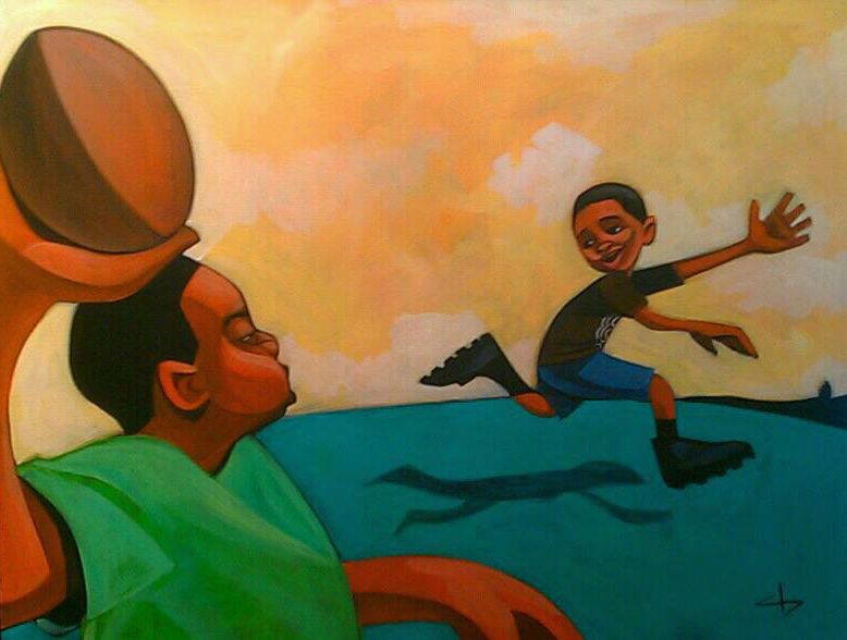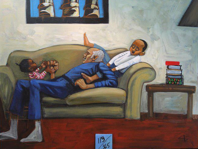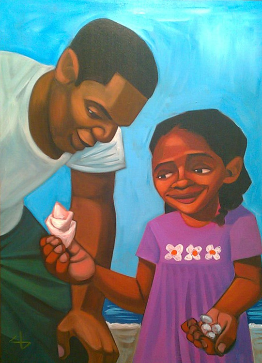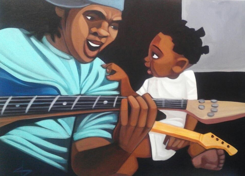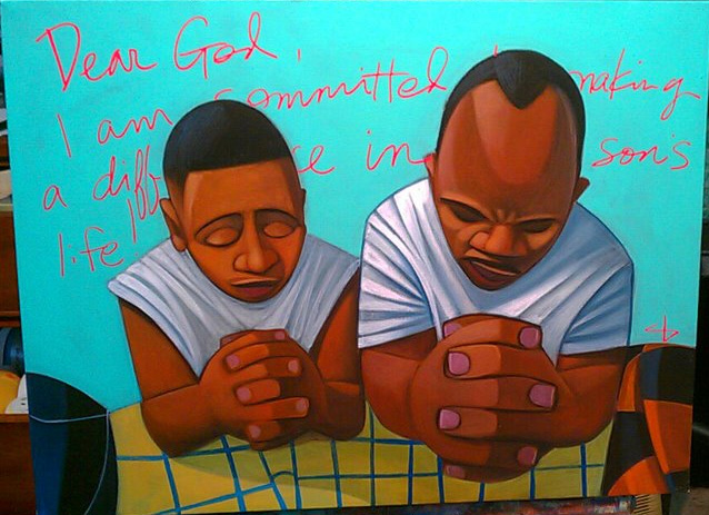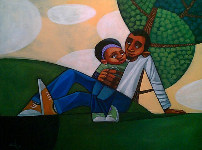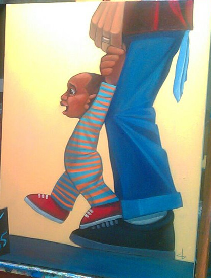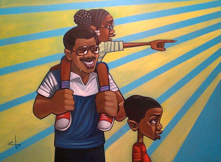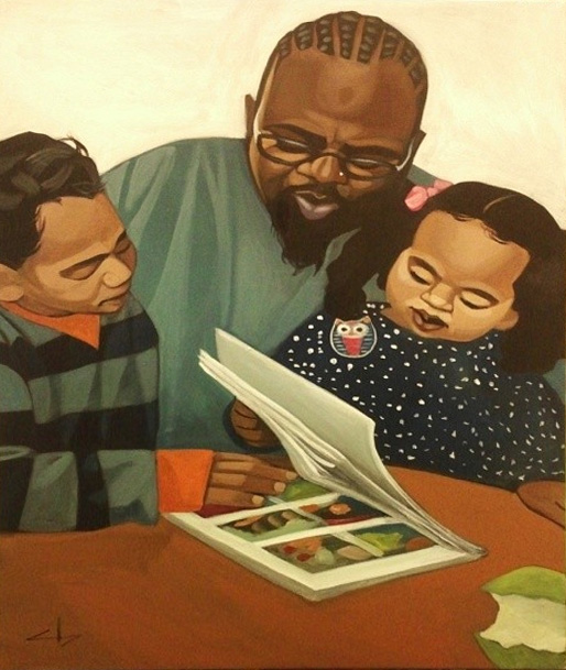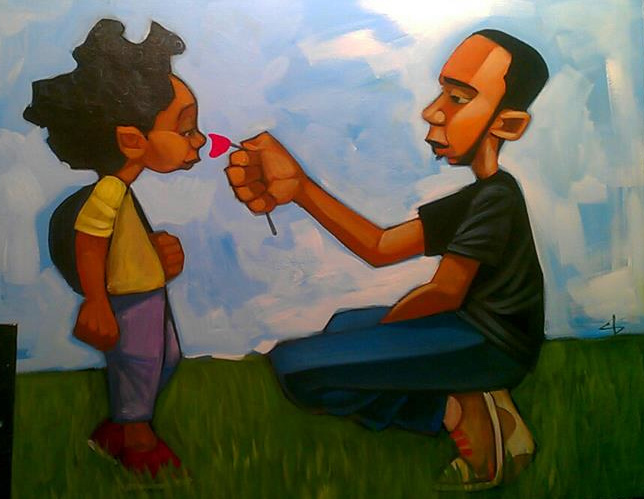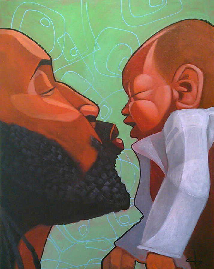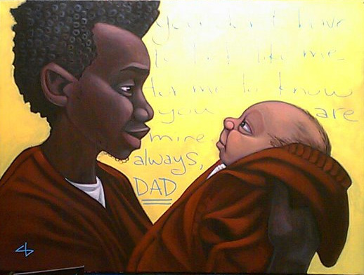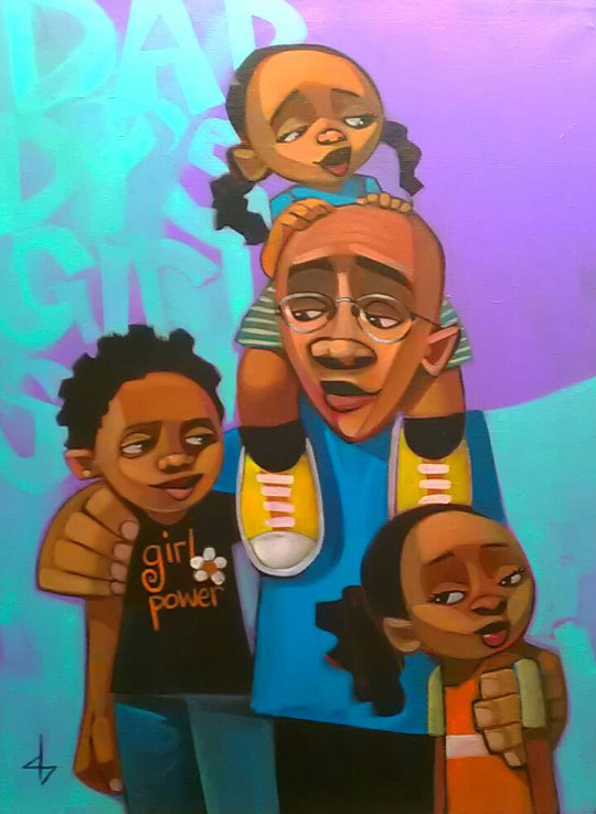 Artist, Cbabi Bayoc who is working to inspire Fathers (specifically African American) to more fully engage with their children. Just because you may not have had a great relationship with your father is no excuse for you not to have one with your child.