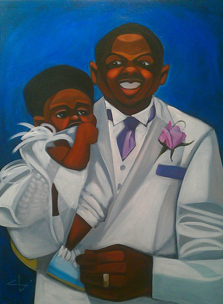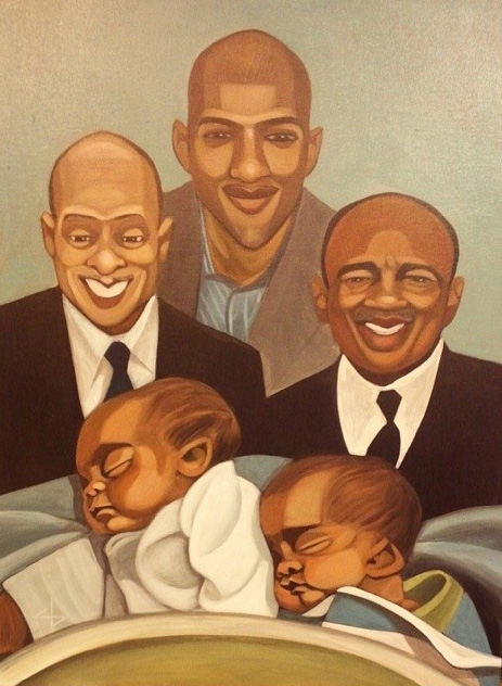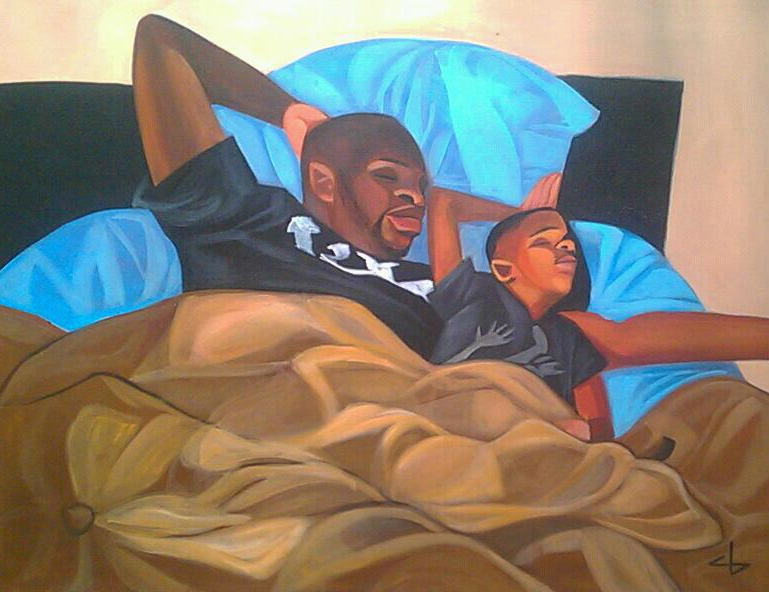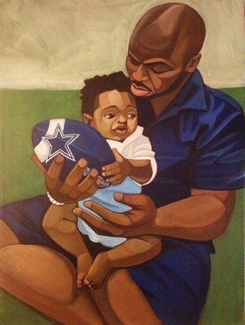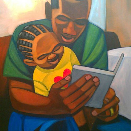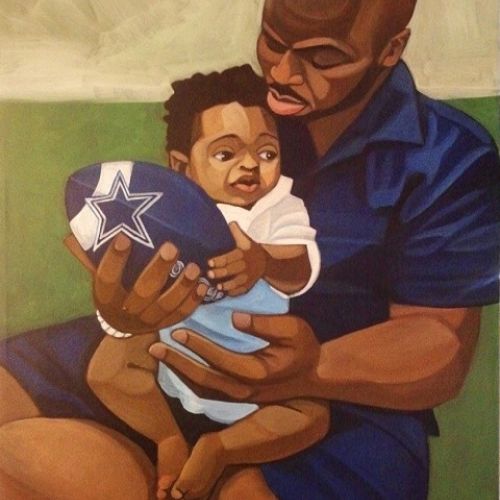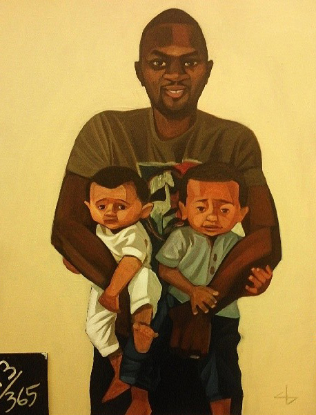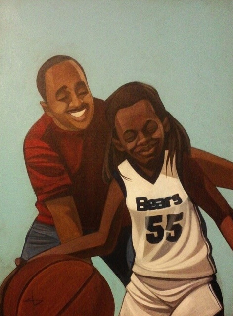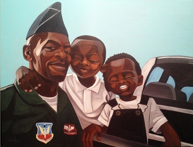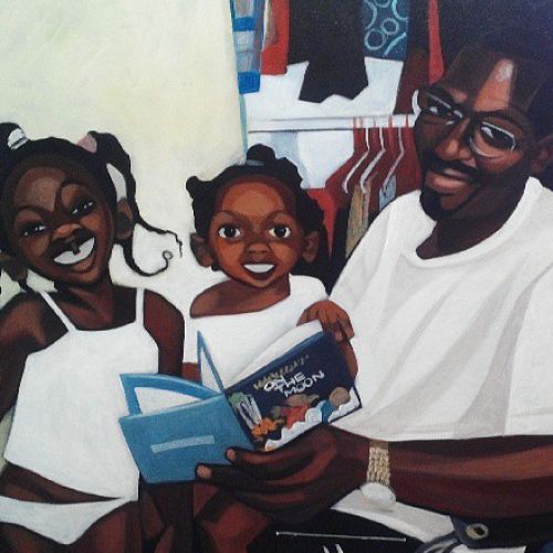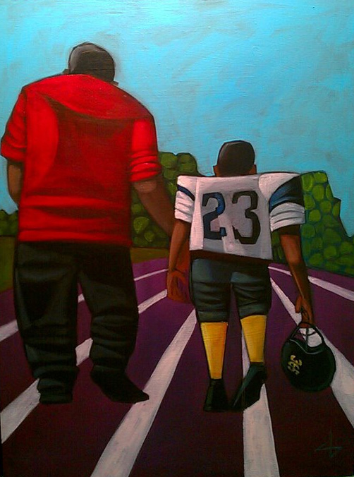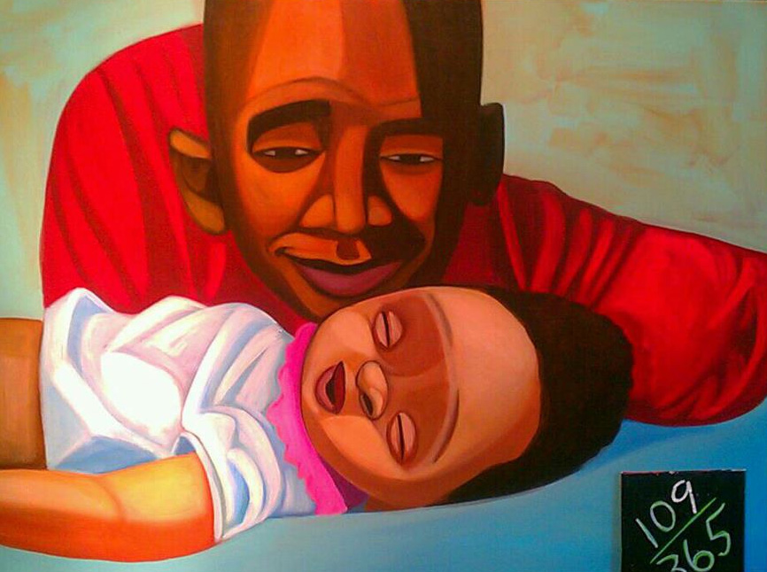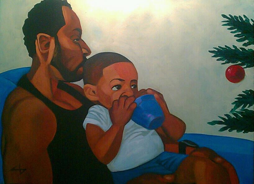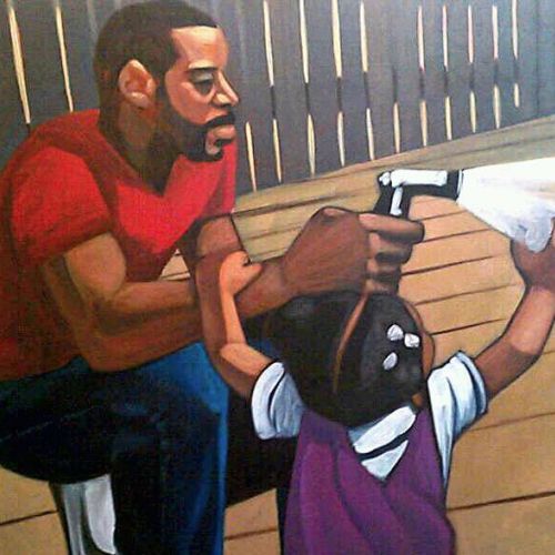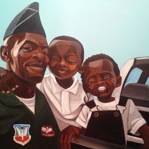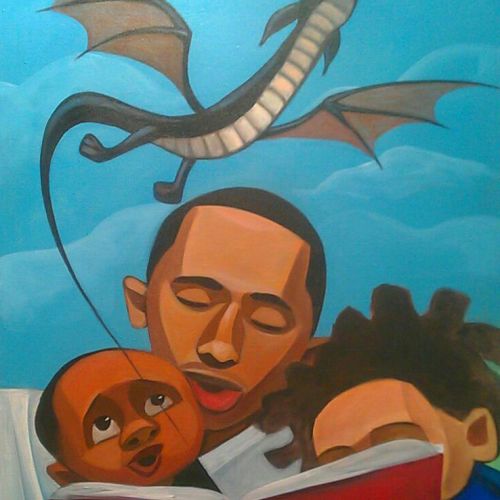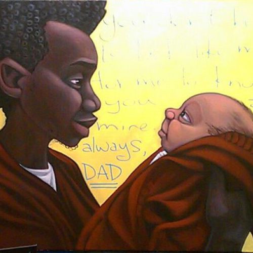Bayoc’s 2012 painting series, “365 Days with Dad,” reflects a positive image of black fatherhood. Following that series, Bayoc wrote a book titled “When I Become Dad,” which he describes as “a few images and words of encouragement for our youth to think about when that magical day comes when they themselves become someone's "daddy." Especially those that have not had the best of examples. Please place this in the hands of as many young (and not so young) men as you possibly can.
