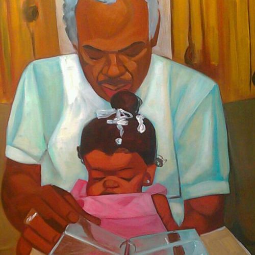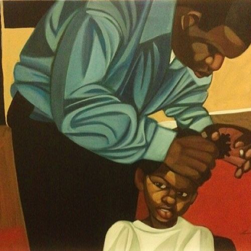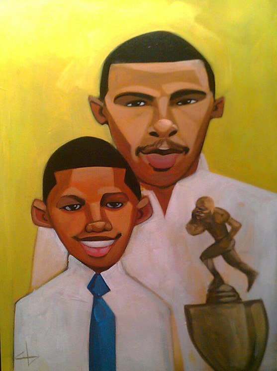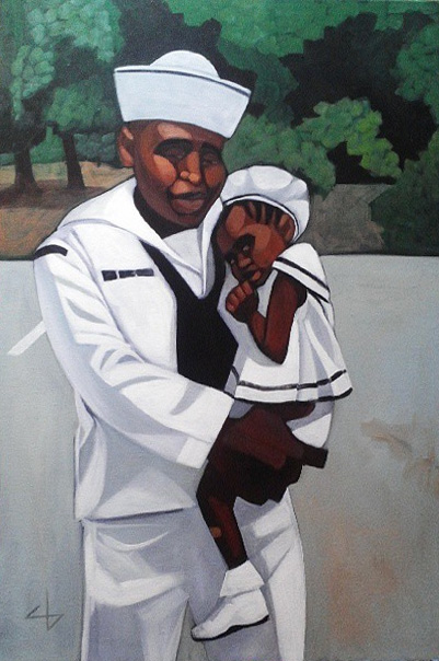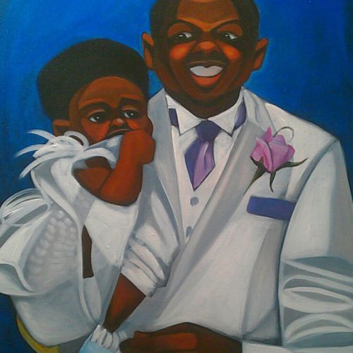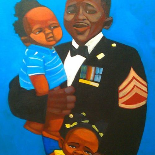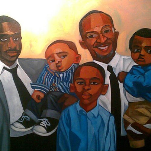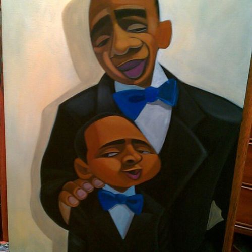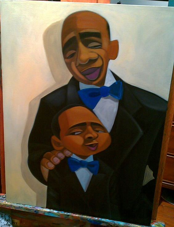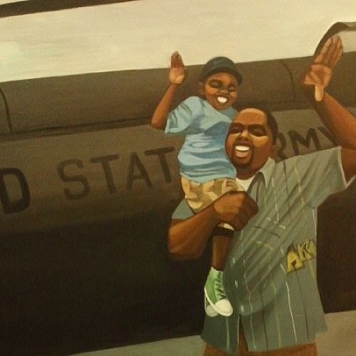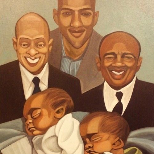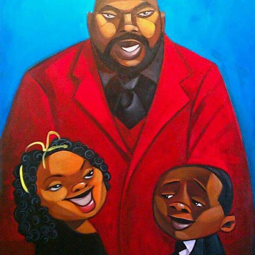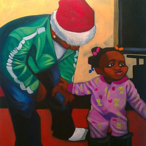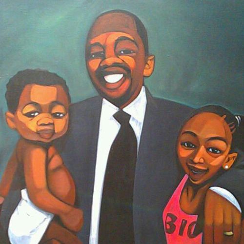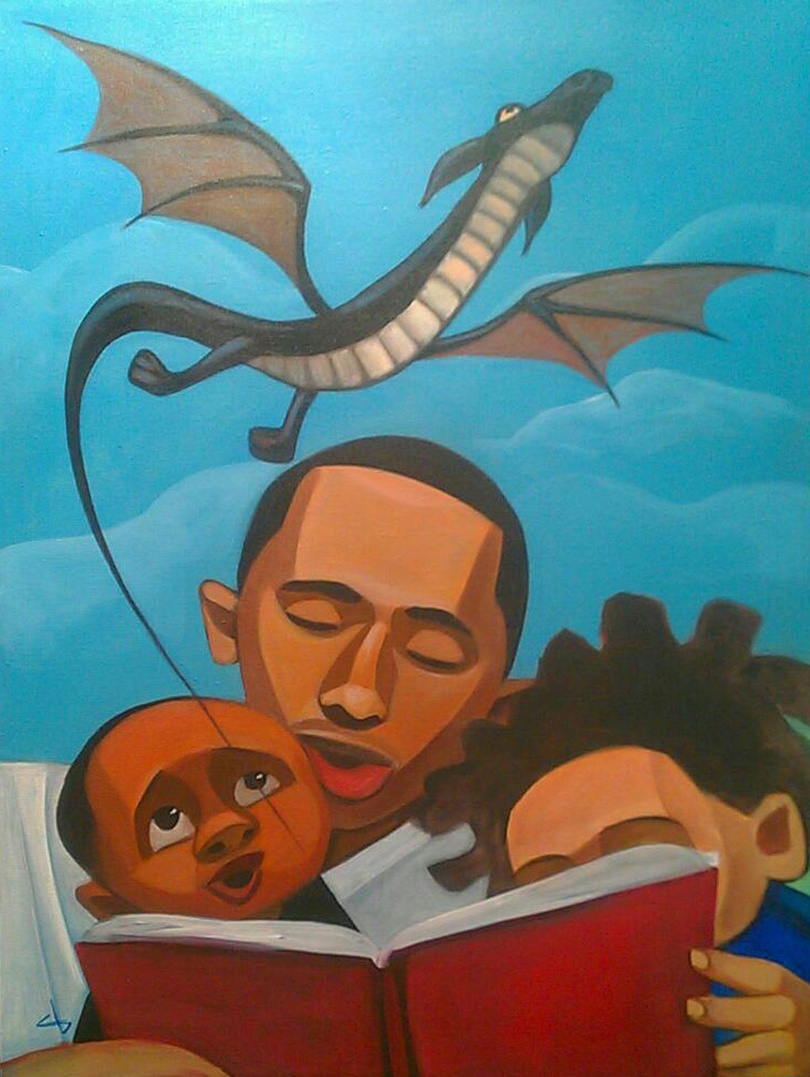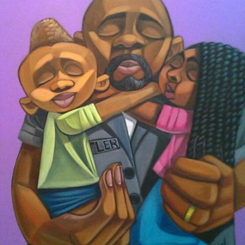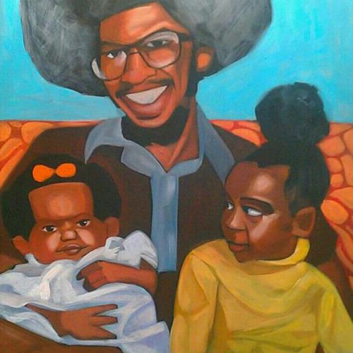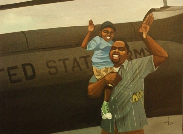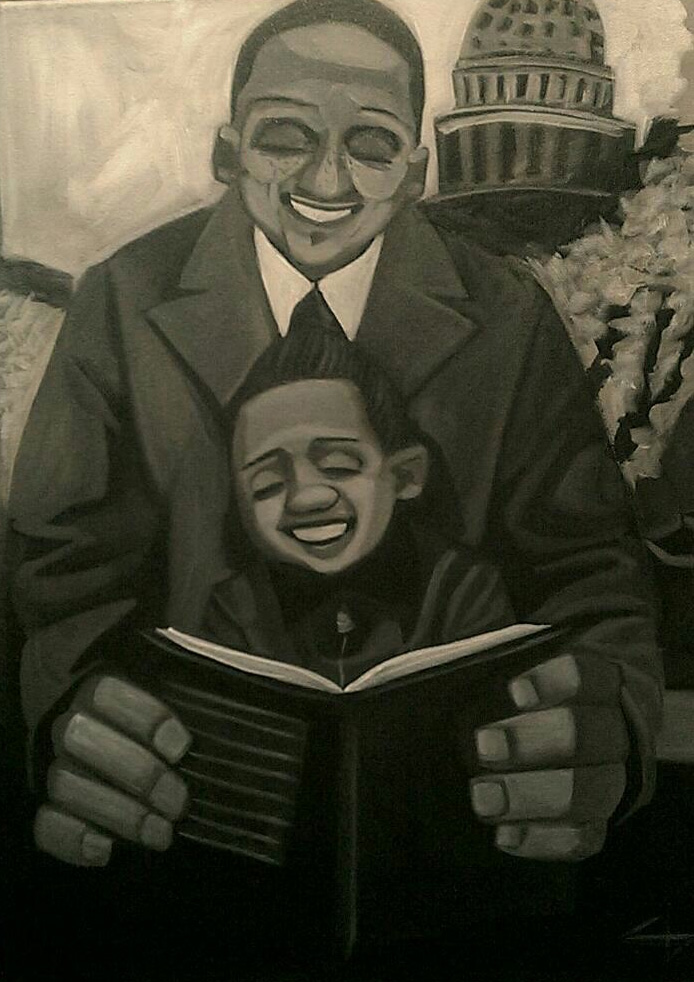 Bayoc’s 2012 painting series, “365 Days with Dad,” reflects a positive image of black fatherhood. Following that series, Bayoc wrote a book titled “When I Become Dad,” which he describes as “a few images and words of encouragement for our youth to think about when that magical day comes when they themselves become someone's "daddy." Especially those that have not had the best of examples. Please place this in the hands of as many young (and not so young) men as you possibly can.