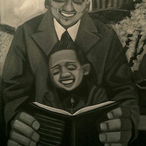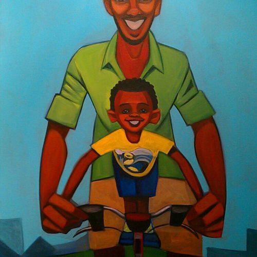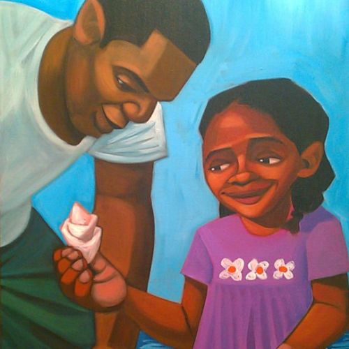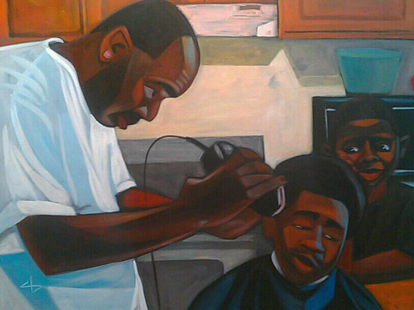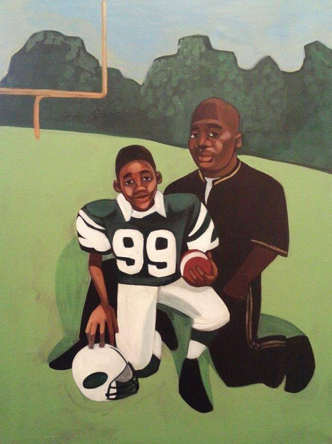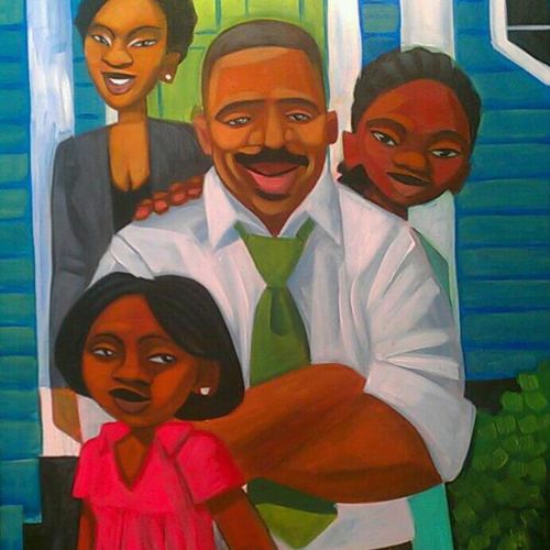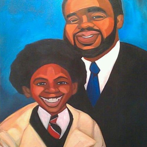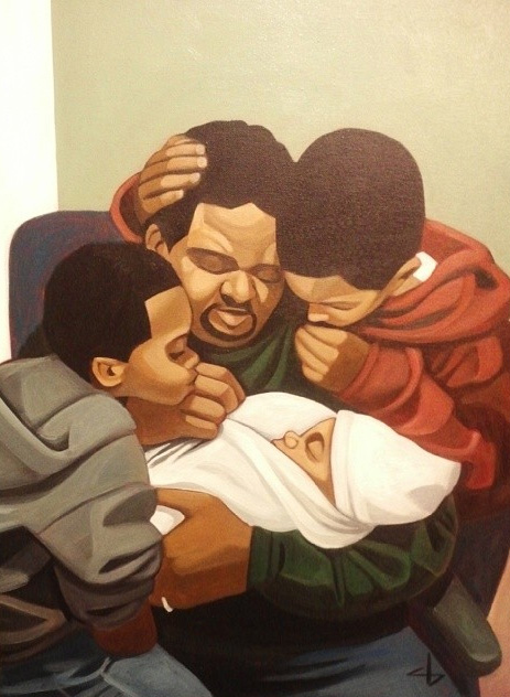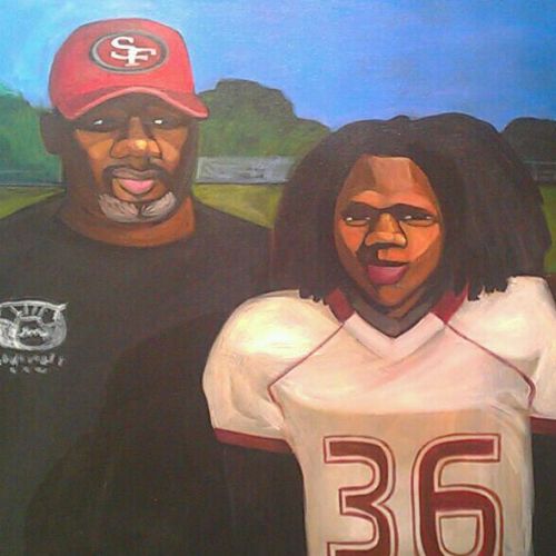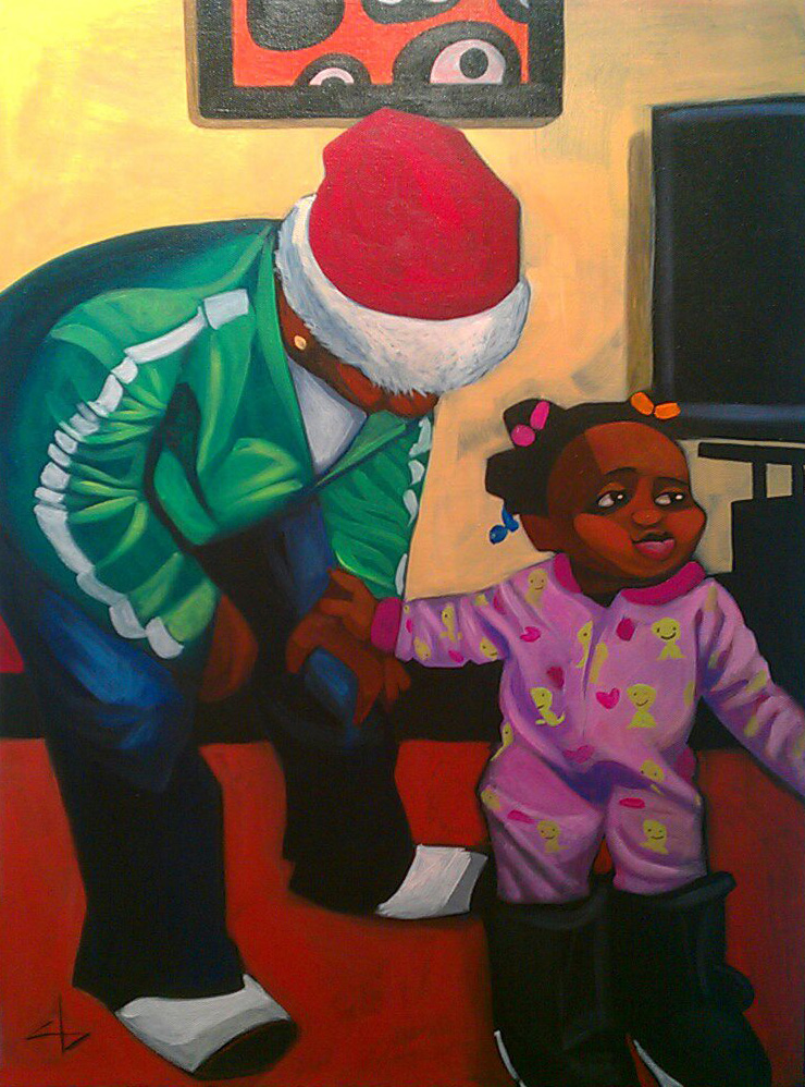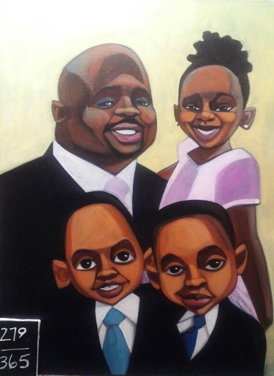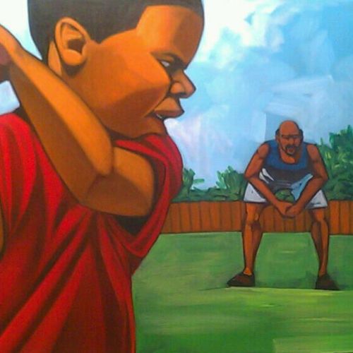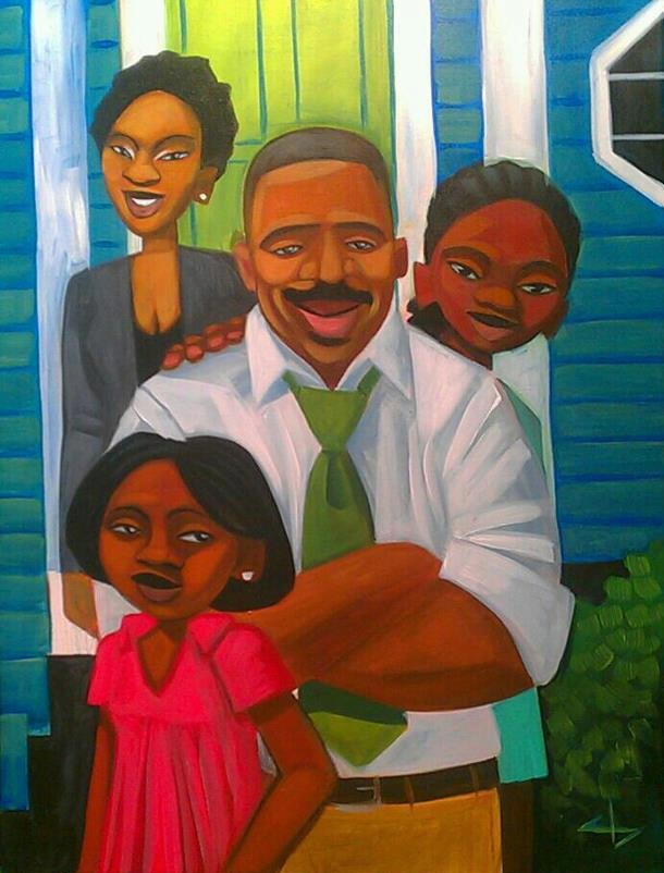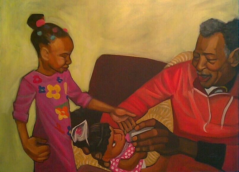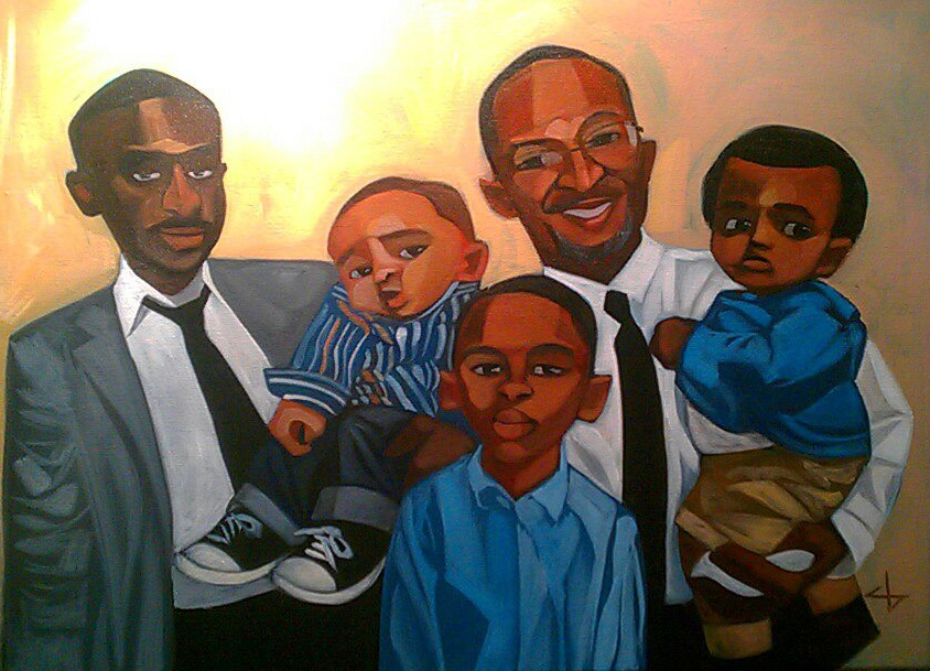 Bayoc’s 2012 painting series, “365 Days with Dad,” reflects a positive image of black fatherhood. Following that series, Bayoc wrote a book titled “When I Become Dad,” which he describes as “a few images and words of encouragement for our youth to think about when that magical day comes when they themselves become someone's "daddy." Especially those that have not had the best of examples. Please place this in the hands of as many young (and not so young) men as you possibly can.