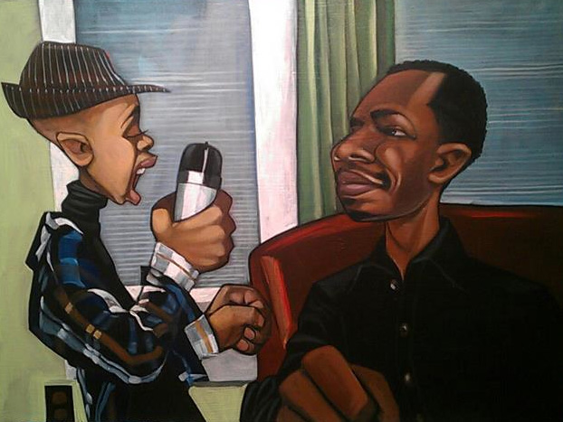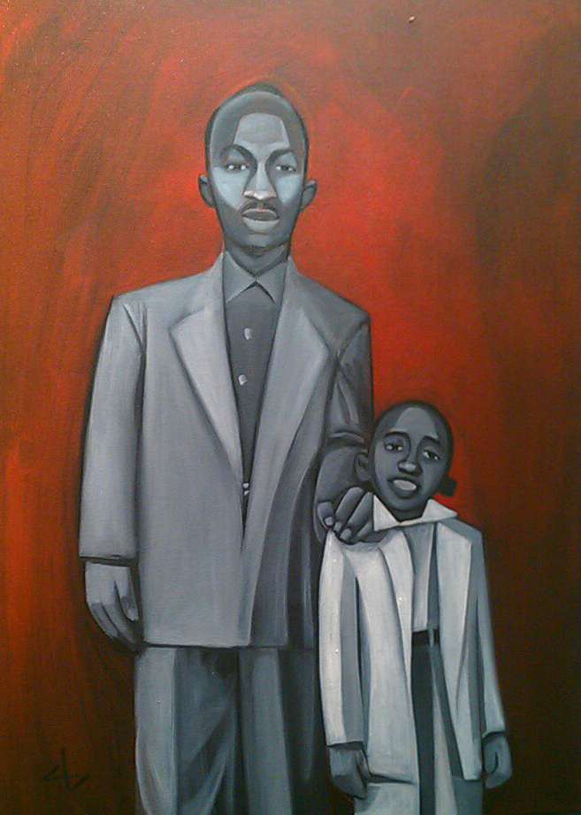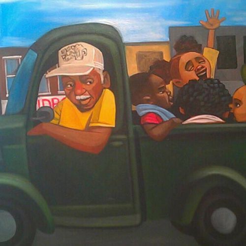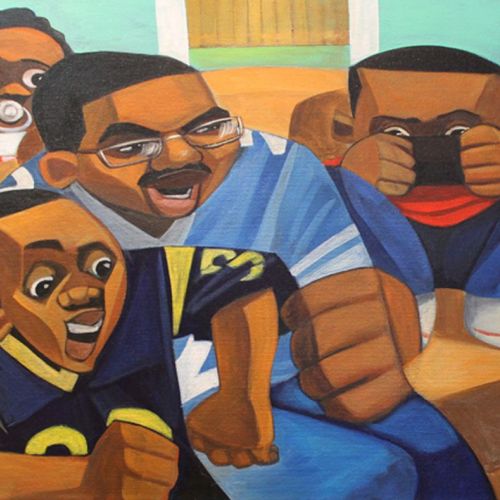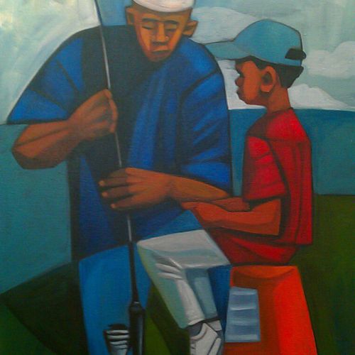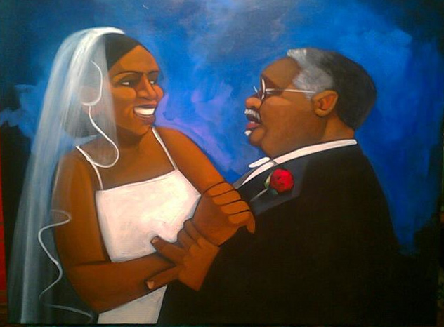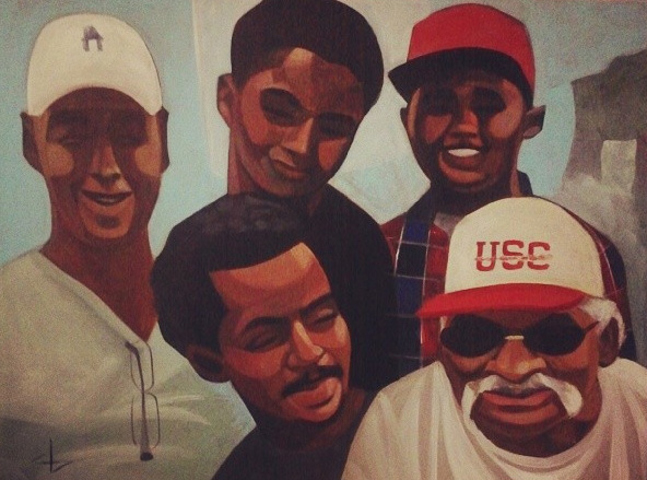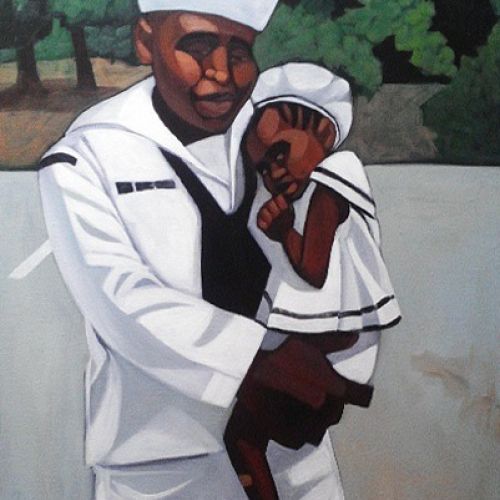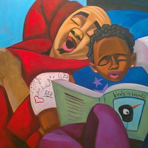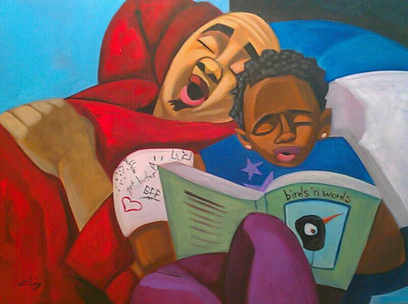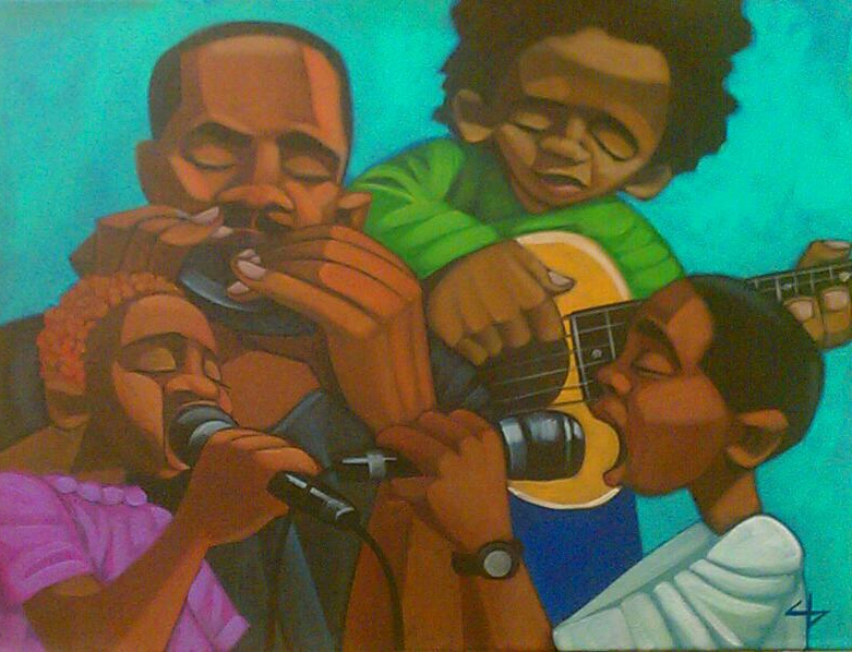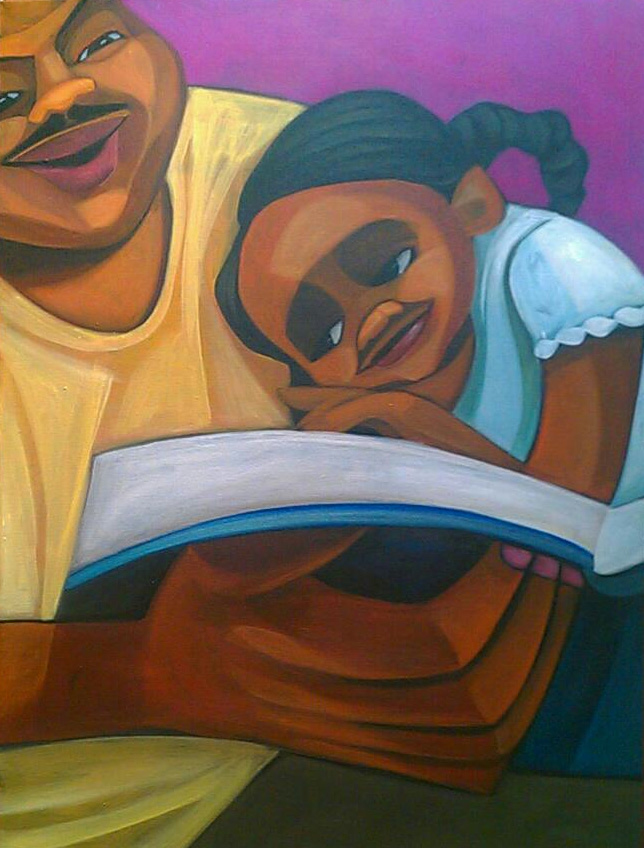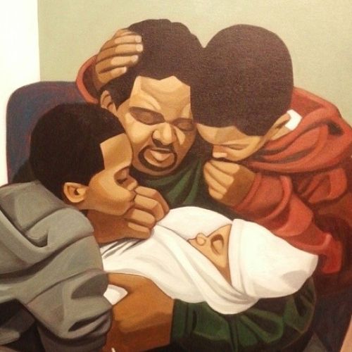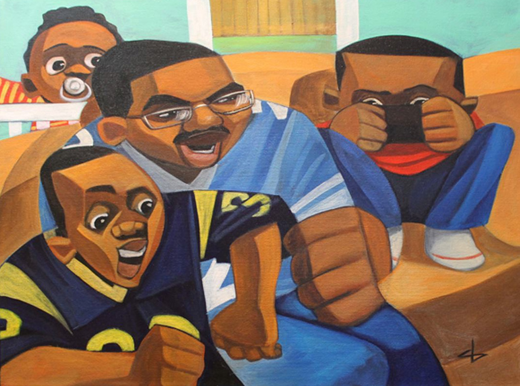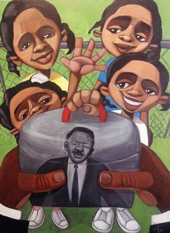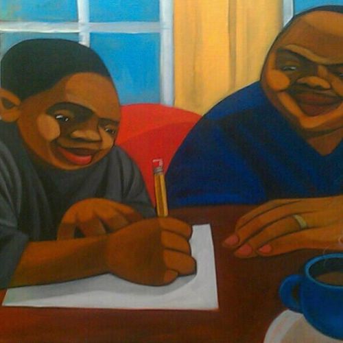 Bayoc’s 2012 painting series, “365 Days with Dad,” reflects a positive image of black fatherhood. Following that series, Bayoc wrote a book titled “When I Become Dad,” which he describes as “a few images and words of encouragement for our youth to think about when that magical day comes when they themselves become someone's "daddy." Especially those that have not had the best of examples. Please place this in the hands of as many young (and not so young) men as you possibly can.