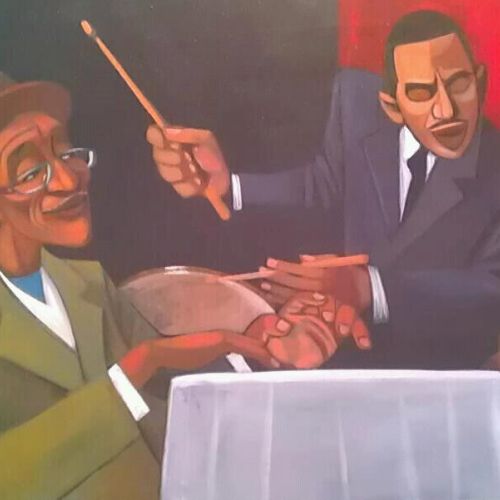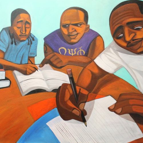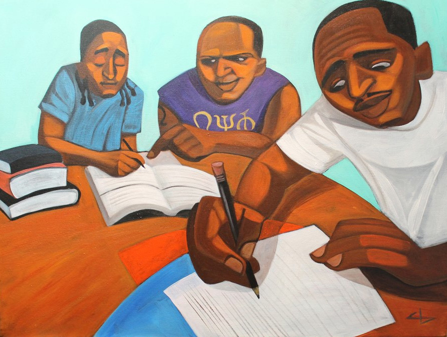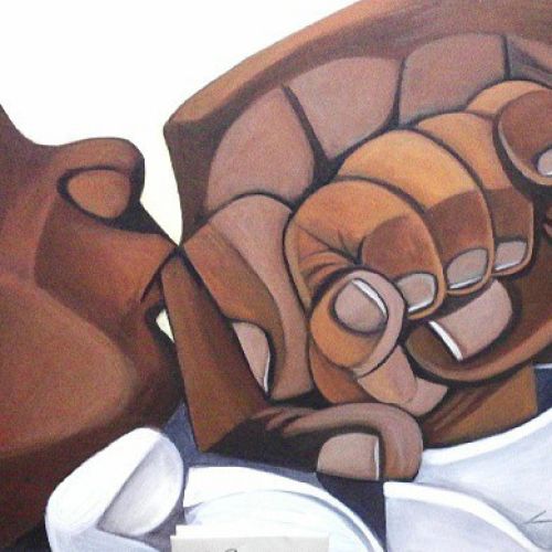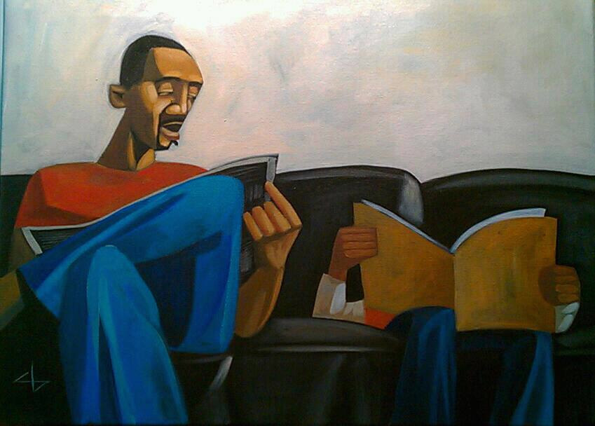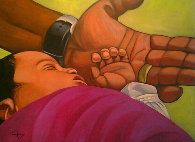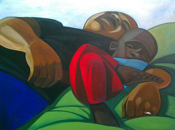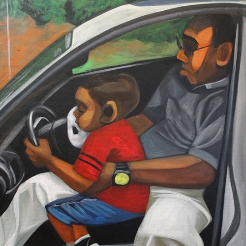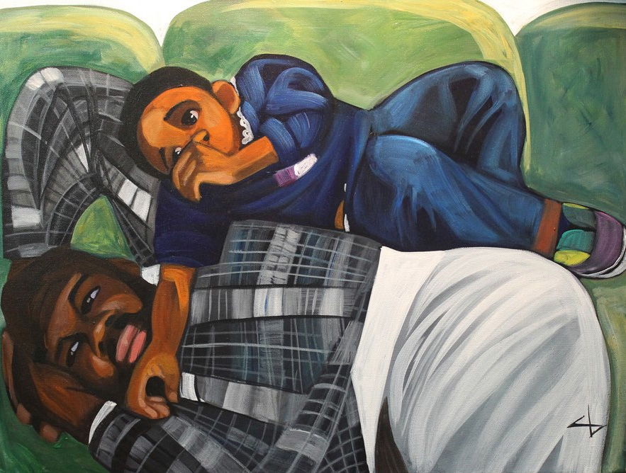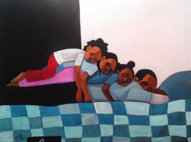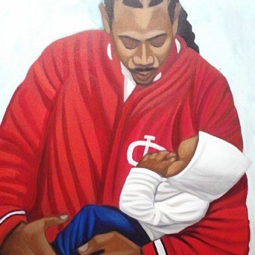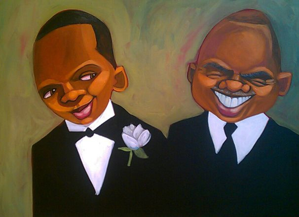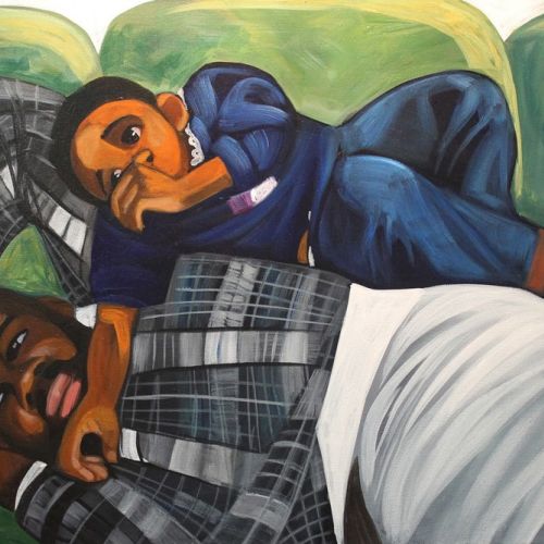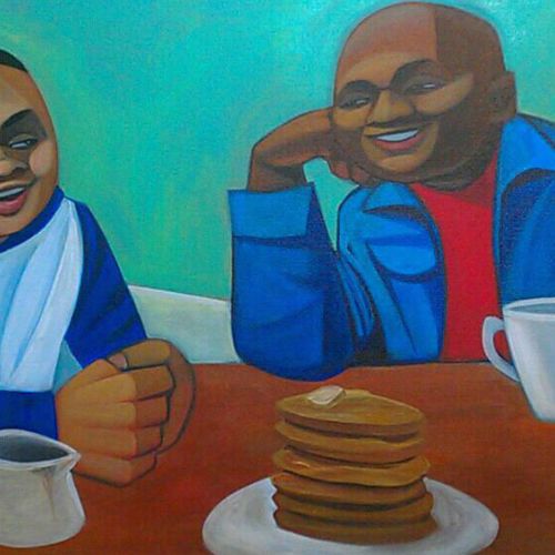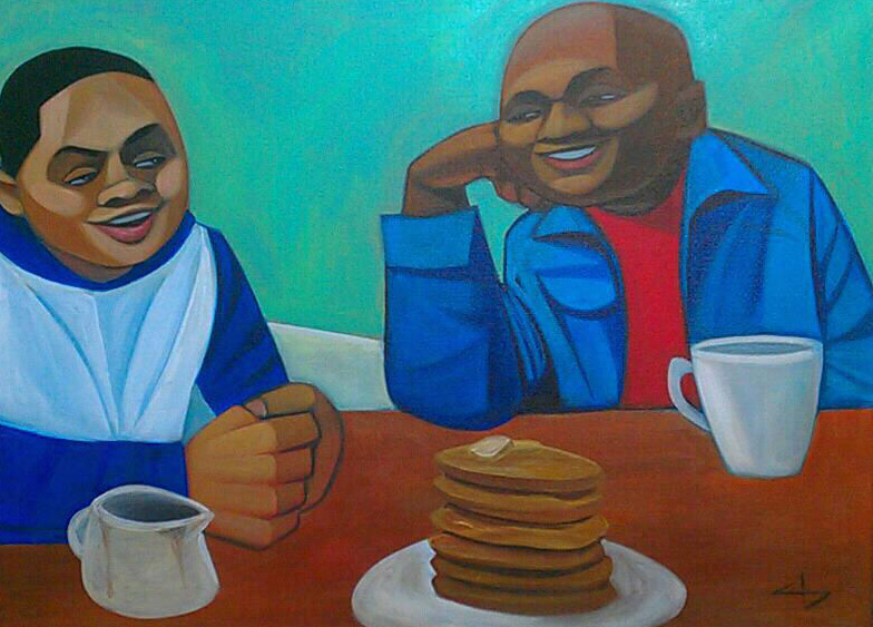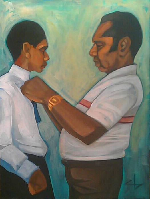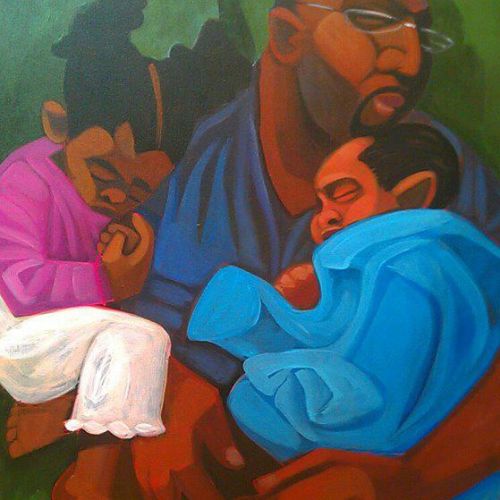 Bayoc’s 2012 painting series, “365 Days with Dad,” reflects a positive image of black fatherhood. Following that series, Bayoc wrote a book titled “When I Become Dad,” which he describes as “a few images and words of encouragement for our youth to think about when that magical day comes when they themselves become someone's "daddy." Especially those that have not had the best of examples. Please place this in the hands of as many young (and not so young) men as you possibly can.