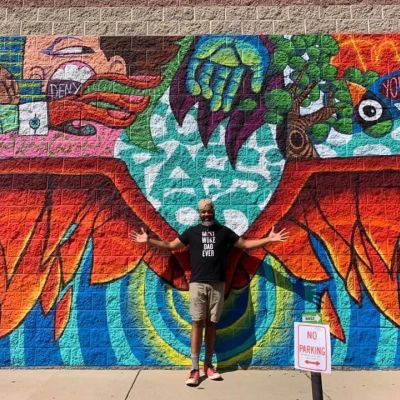Cbabi Bayoc was tapped by The Repertory Theatre of St. Louis to create the mural to go along with its debut of the play ‘Angels in America’. The two-part play by Tony Kushner won several awards when it debuted in the early 1990s, including the Pulitzer Prize for Drama and the Tony Award for Best Play.