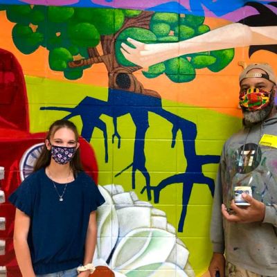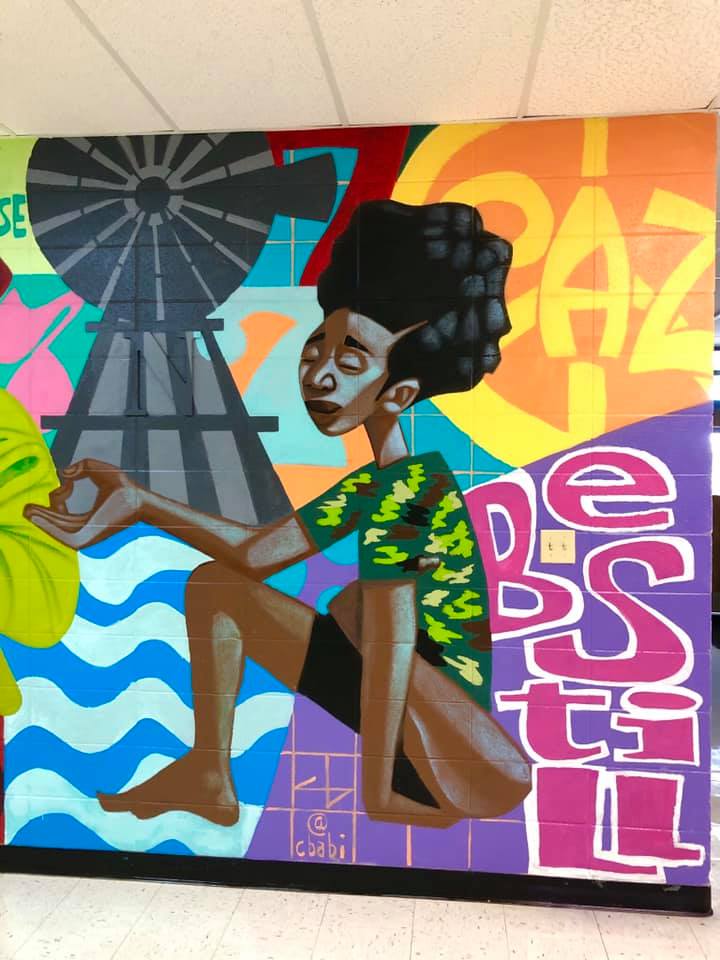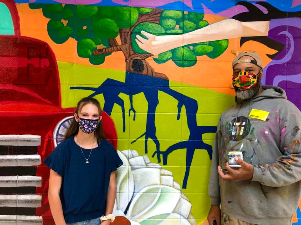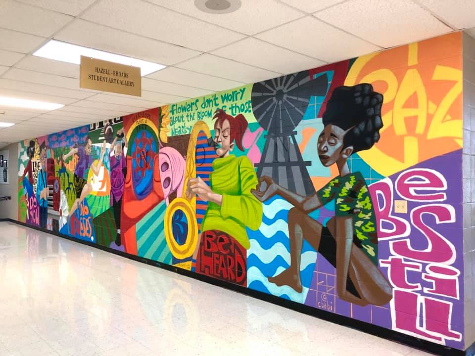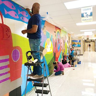 Lebanon High School Art Teacher Elizabeth Barker eceived a grant from the Missouri Arts Council to have St. Louis artist Cbabi Bayoc paint a mural with the assistance of students.